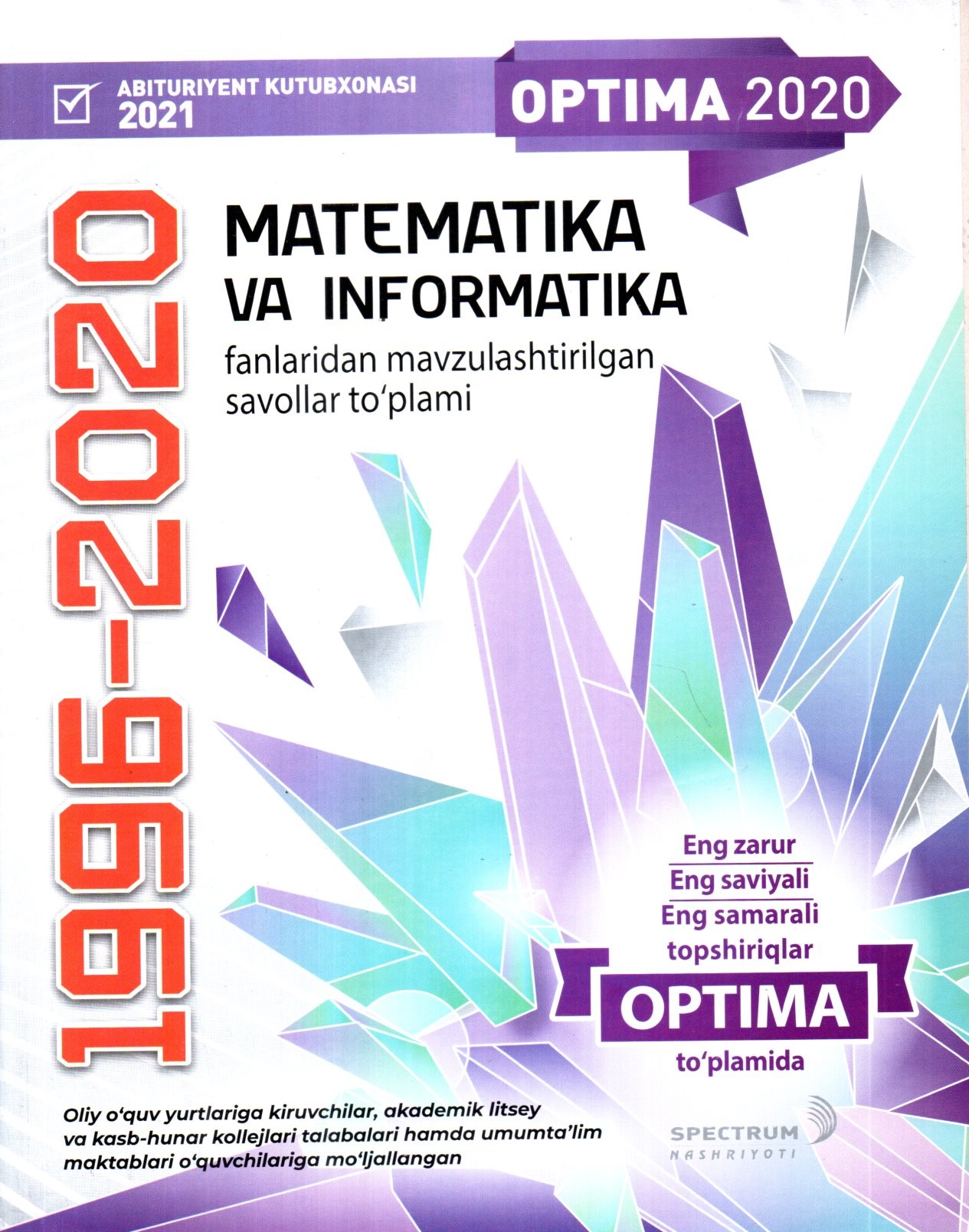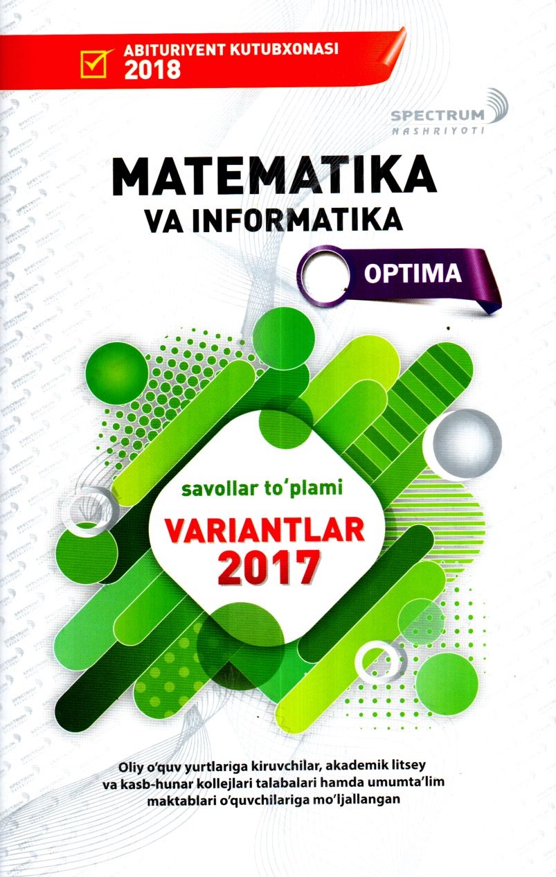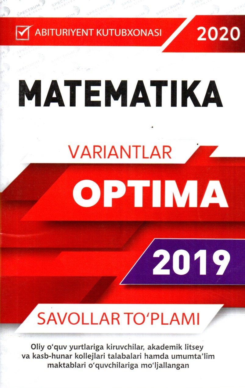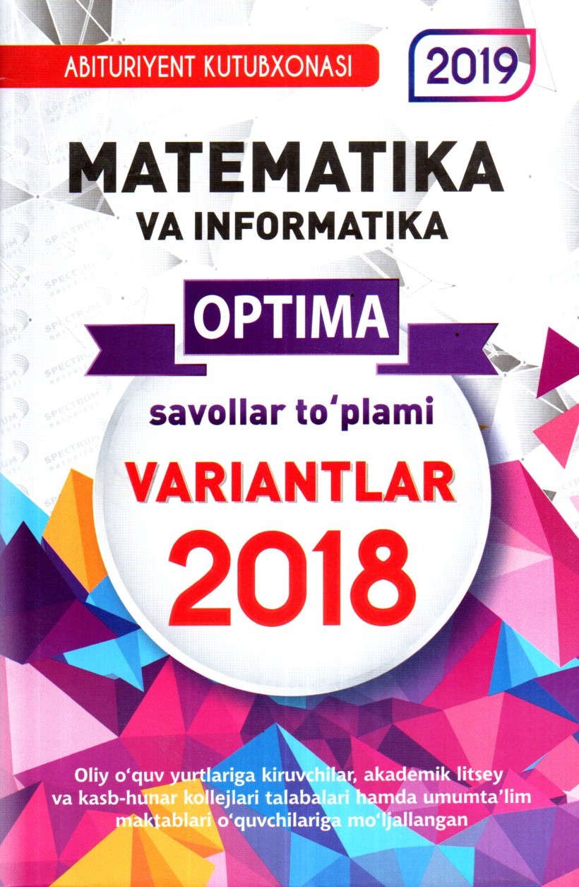 Oliy o'quv yurtiga kiruvchilar, akademik litsey va kasb-hunar kollejlari talablari hamda umum ta'lim maktablari o'quvchilarga mo'ljallangan..