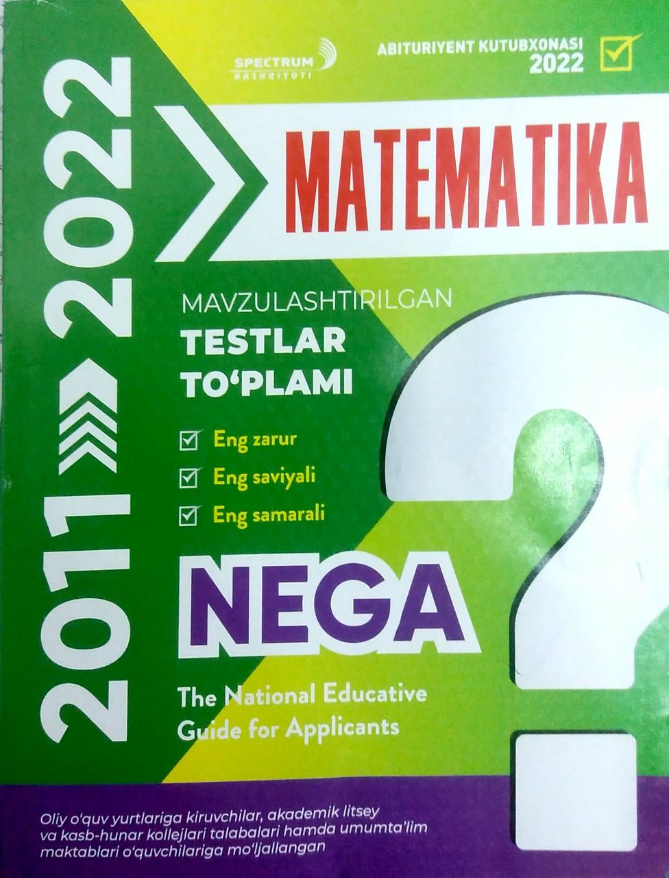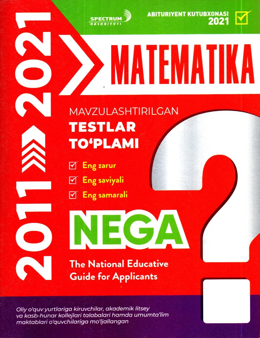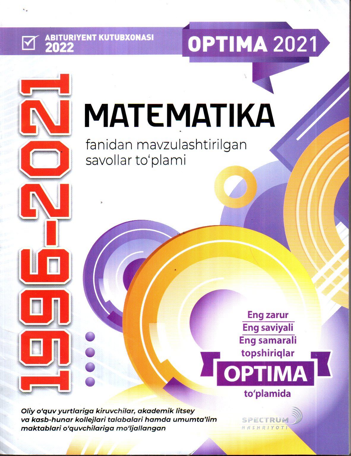 Oliy o'quv yurtiga kiruvchilar, akademik litsey va kasb-hunar kollejlari talablari hamda umum ta'lim maktablari o'quvchilarga mo'ljallangan..