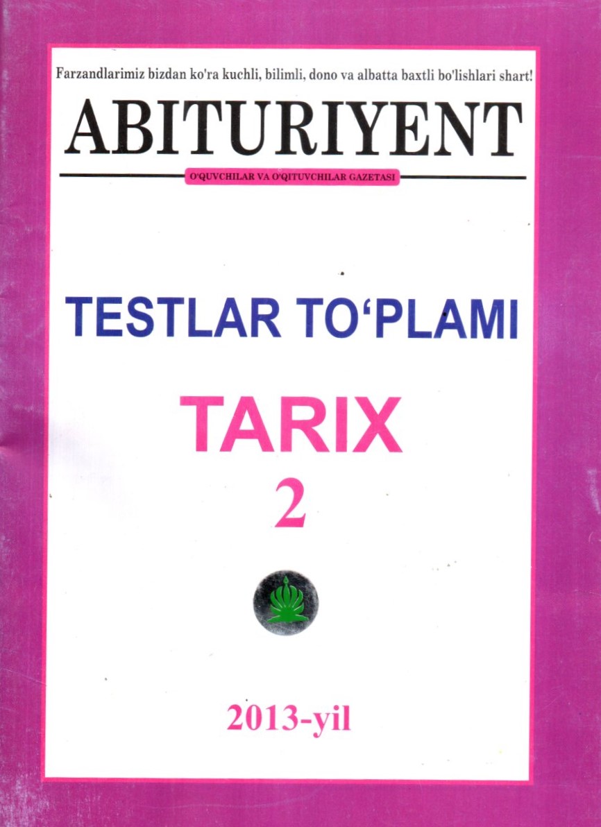 Mazkur to'plam "Abituriyent" gazetasining 2011-yilgi sonlari orqli e'lon qilingan testlardan tarkib topgan...